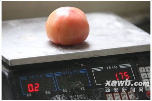 昨日,在朱雀门外某蔬菜市场,单买一个西红柿要花1.75元。 记者 李安定 摄