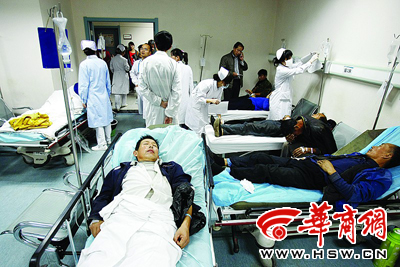 昨日上午10时许,西安交大二附院主管医疗的副院长贺西京通报了中毒者病情,他们医院收治16名中毒者,其中8名属于重症病人,1名有生命危险。除了那名有生命危险的,其他病人病情平稳。医院紧急采取解毒措施进行救治。