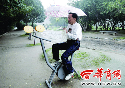 昨日,西安朱雀门附近的环城公园里,70岁的焦师傅在健身器械上蹬着,嘴里还不停地数着数。他说,每天都来这里蹬1000圈以上,下雨了也要坚持锻炼。
