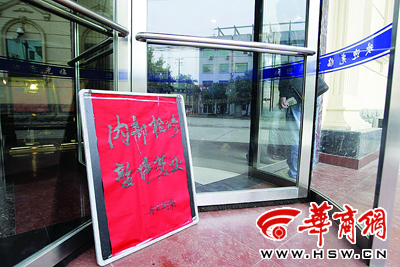 昨日中午,户县东方浴都大门被从里面用铁链子紧锁着。门口写着几个字,“内部检修暂停营业”。透过玻璃窗可以看到,大厅供奉了一座财神,财神前两根电蜡烛一根已经熄灭,另外一根还发出弱光。角落里五六名服务生正在玩着纸牌。
