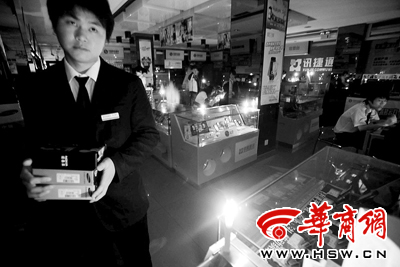 商户忍不住纷纷打电力抢修热线,询问恢复供电时间。上午10时30分许,抢修热线值班人员称,工作人员正在积极排查故障原因,何时能恢复供电,现在还不好说。“今日停电,手机特价销售!”案板街的一名手机销售人员,站在店门口大声吆喝。他这种特别的促销方式,倒也吸引了不少客人驻足。走进店内,一些顾客在烛光下向销售人员了解手机性能,实在看不清了,就把手机模具拿到店外细看。“因为停电,顾客能比平时少80%。