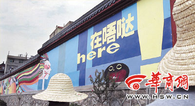 西安在建彩绘墙广告有特色 只是还有点小"麻达"