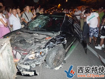 7月11日晚23:50左右,西梆子市街原海星超市前发生一起交通事故,一辆经过改装的马自达3小轿车与一辆微型面包车迎面相撞后又撞上一过路年轻女子,司机连车都未来得及熄火就逃离现场,该女子被撞到数米高后又砸碎该车挡风玻璃,掉在车前五六米远,地面划出一道长长的血印,头部严重变形无法辨认,愤怒的群众没追上司机打电话报警,120到后已无生命特征....由于该(改装)车速度极快被围观群众戏称“西安跑车飙车案” 。